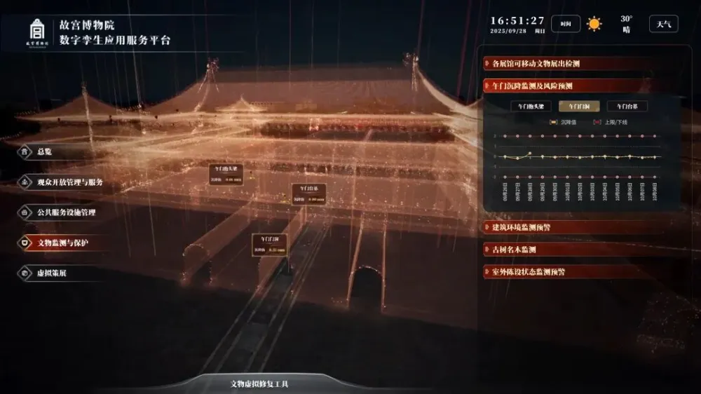 在数字文化领域,联通数智充分发挥大数据、5G以及数字孪生等方面的技术优势,参与建设覆盖全场景的故宫数字孪生平台,灵活运用基于地理信息GIS的人工建模、3D高斯泼溅、激光点云等技术,实现局部4K精度重建,打造国内首个面向公众开放的高精度博物馆数字孪生应用,并形成可复制的“云-边-端”协同架构,为全国智慧博物馆建设提供范本。